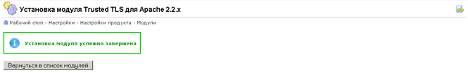 Рис. 6 Установленный модуль Аутентификации по TLS
