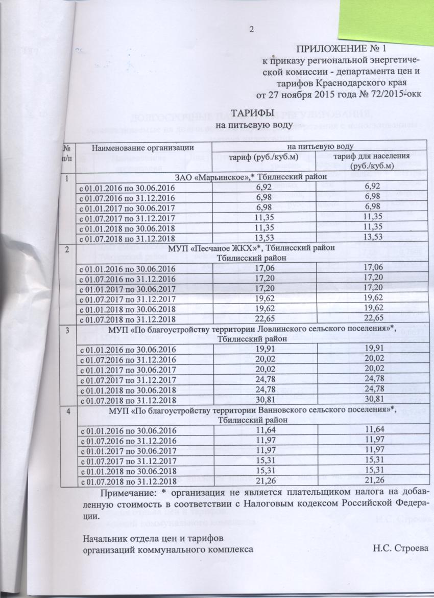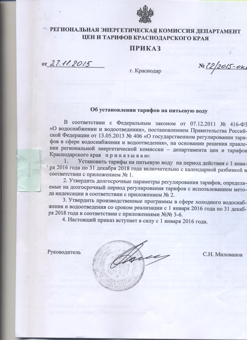 Приказ" Об установлении тарифов на питьевую воду" скан 003.jpg